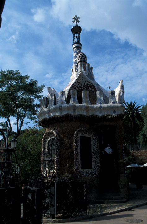 Das Eingangstor wird durch zwei turmartige Pförtnerhäuschen eingerahmt, in dem heute eine Bibliothek und eine kleine Bar untergebracht sind.