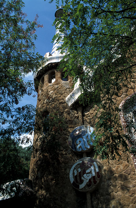 Aussenansicht des Pförtnerhäuschens am Haupteingang des Parcs. An der Fassade Maolik - Schriftzüge des Parcs.