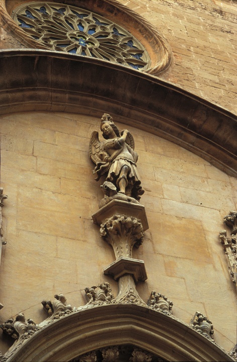 Engel über dem Seitenportal der Basílica i Claustre de Sant Francesc · Palma de Mallorca