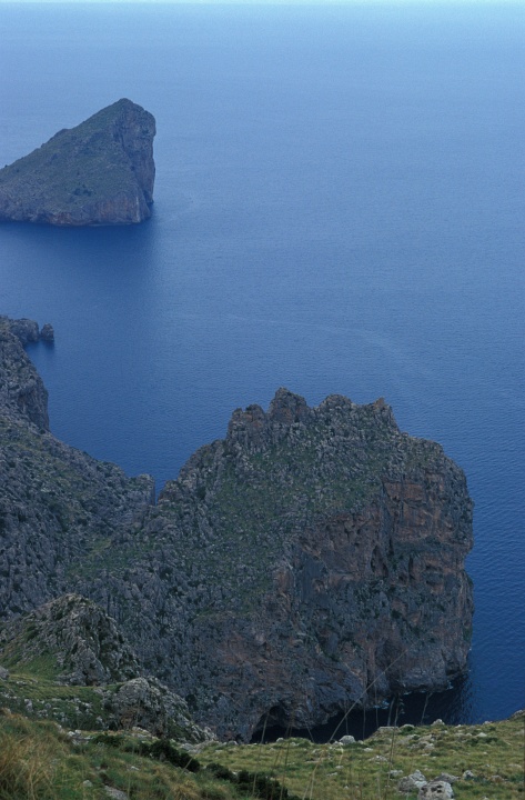 Blick auf den Morro d'en Bordils mit seinem Piratenausguck und Morro de Sa Vaca dahinter · Wanderung Puig Roig