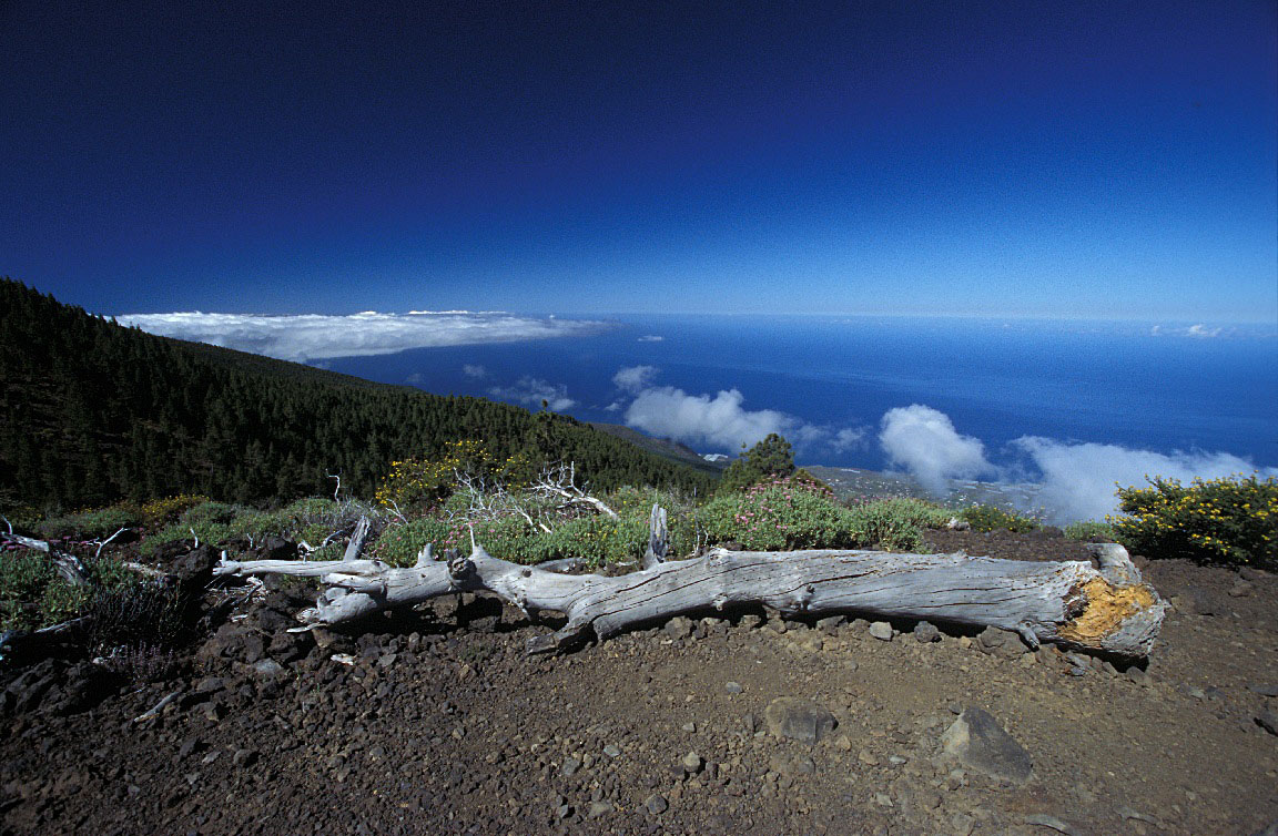 Ausblick auf die Westküste vom Kraterand unterhalb des Gipfels beim Birigoyo · Refugio del Pilar, Pico Birigoyo & Pico Nambroque