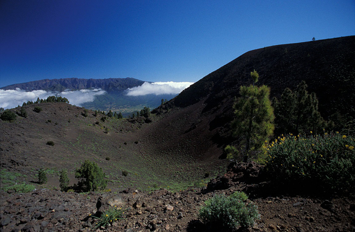 Blick zurück über den Krater · Refugio del Pilar, Pico Birigoyo & Pico Nambroque