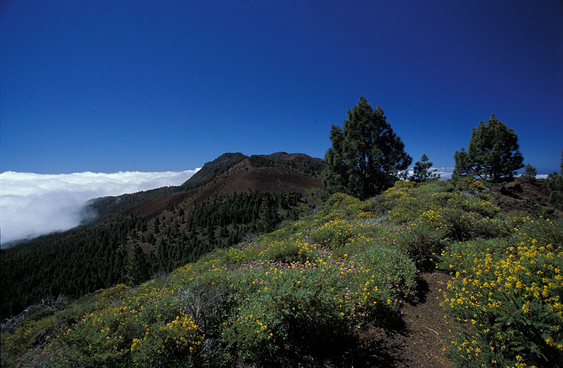 Erster freier Blick vom Montaņa la Barquita (1.809 m) auf die Gipfel um den Nambroque · Refugio del Pilar, Pico Birigoyo & Pico Nambroque