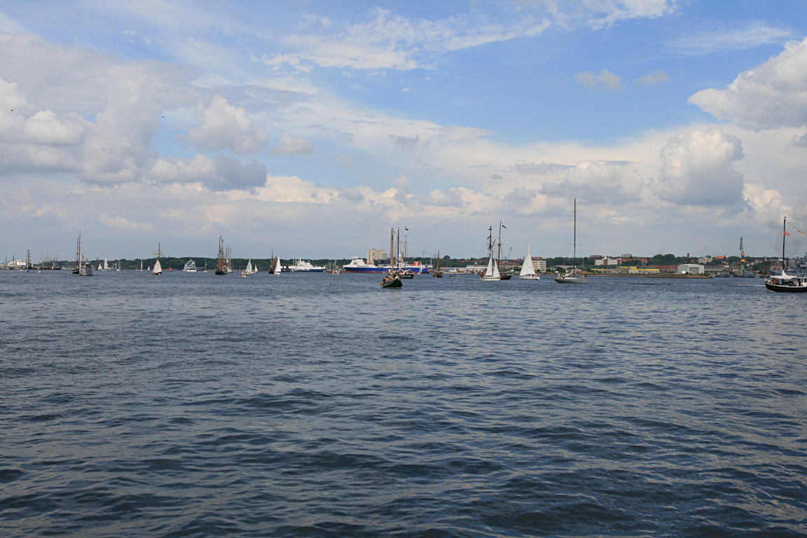 Blick vom Ostseekai über die Seegler, die zur Mittagspause einlaufen · Kieler Hafen