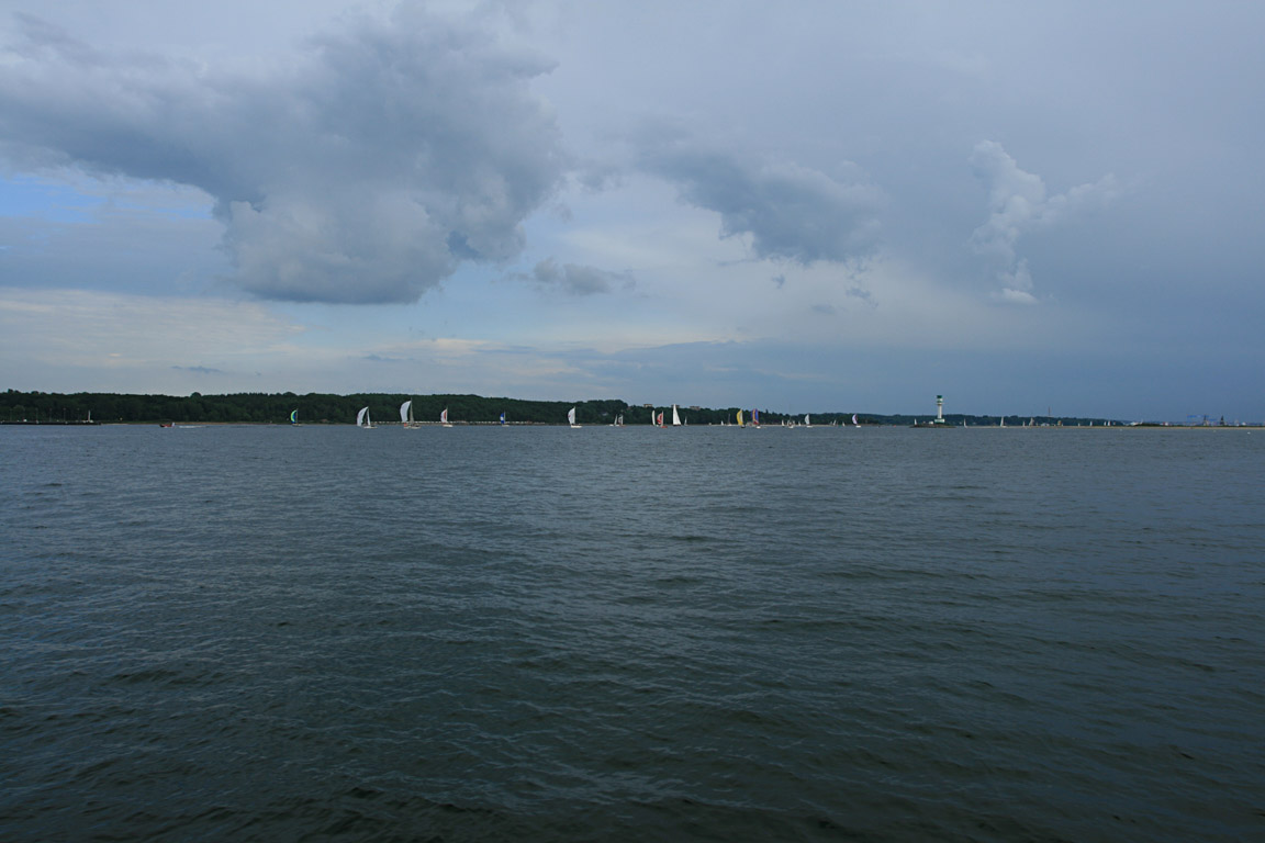 Auslaufende Segler am frühen Abend am Leuchtturm Friedrichsort · Fähre Laboe - Kiel