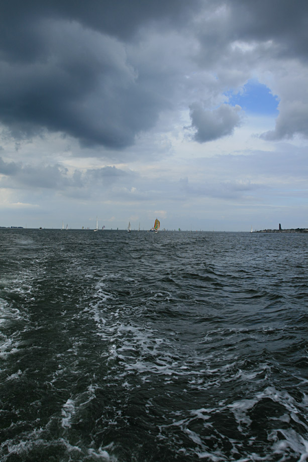 Klassisches Kieler-Woche-Wetter: viel Wolken und ein klein wenig blauer Himmel · Fähre Laboe - Kiel