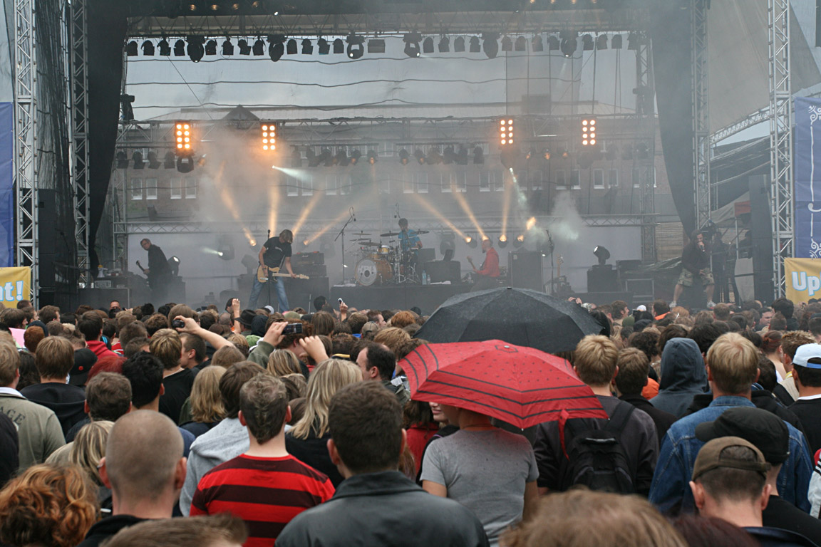 Dann war es vorbei mit beschaulich und Segelschiffe gucken · Bühne an der Hörn
